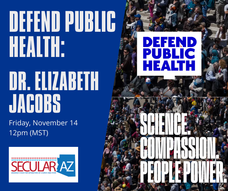 Join us Friday, November 14, at 12p (MST) for special guest Dr. Elizabeth Jacobs. She’ll introduce the new organization Defend Public Health, and discuss falling vaccination rates and the impact of both religious and philosophical exemptions on vaccine coverage. Elizabeth Jacobs is a Professor Emerita who retired from the Department of Epidemiology and Biostatistics at the UofA. Her research focus areas included cancer prevention and control, vaccine refusal, and COVID19. She was the principal investigator of several NIH-funded grants, and published more than 120 peer-reviewed papers related to her work. Click here to register for this virtual event. |